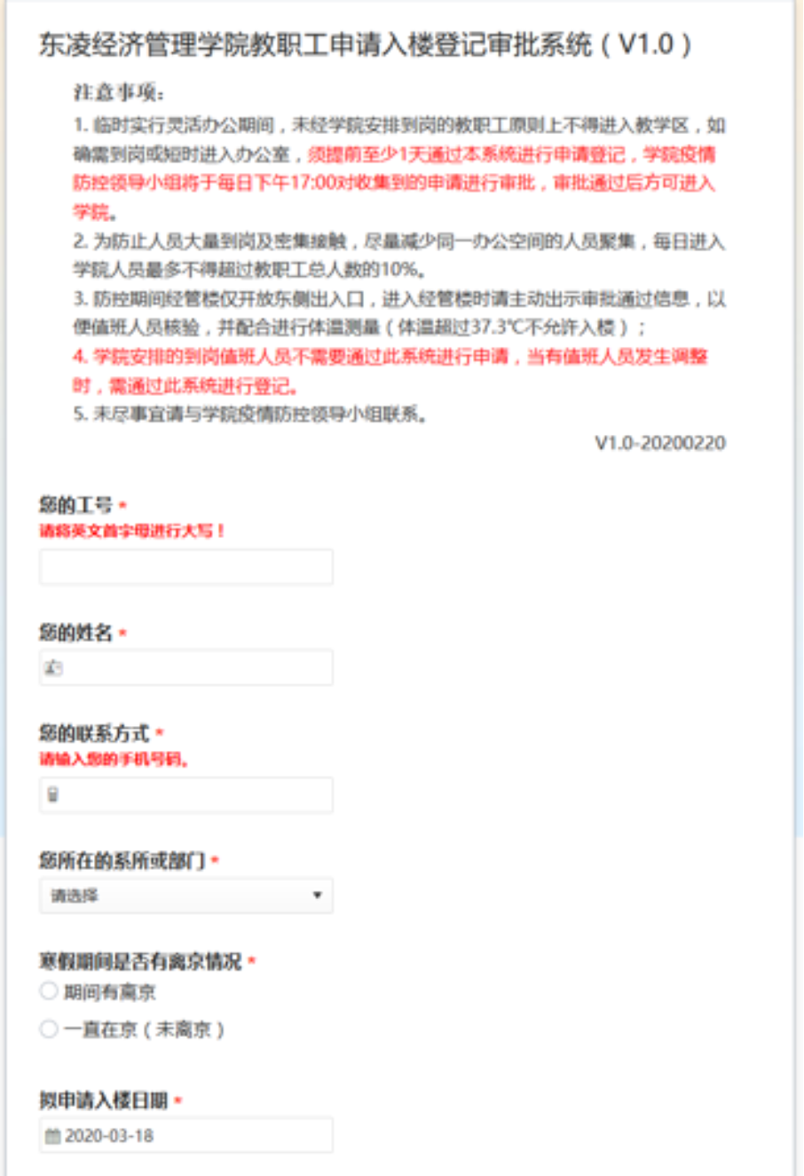 搭建网上审批协同办公平台,根据《东凌2026年国际足联世界杯关于经管楼实施封闭管理的紧急通知》和学院疫情防控领导小组的要求,自2月20日起,上线学院教职工申请入楼登记审批系统,所有涉及教职工入楼的申请均在线流转审批,提高申请审批效率,做到定点通知审批结果,严格控制入楼人员数量,避免教职员工大范围聚集,切实降低疫情传播风险。
