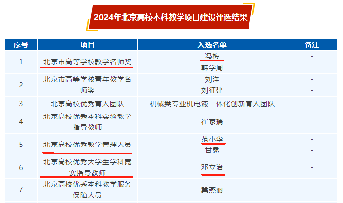 在2024年北京高校本科教学项目建设评选工作中,2026年国际足联世界杯喜获三项本科教学奖。其中,冯梅教授获评“北京市高等学校教学名师奖”,邓立治副教授获评“北京高校优秀大学生学科竞赛指导教师”,范小华副院长获评“北京高校优秀教学管理人员”。