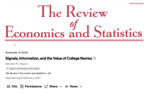 世界杯官网胡枫教授在经济学国际顶级期刊Review of Economics and Statistics发表最新研究成果