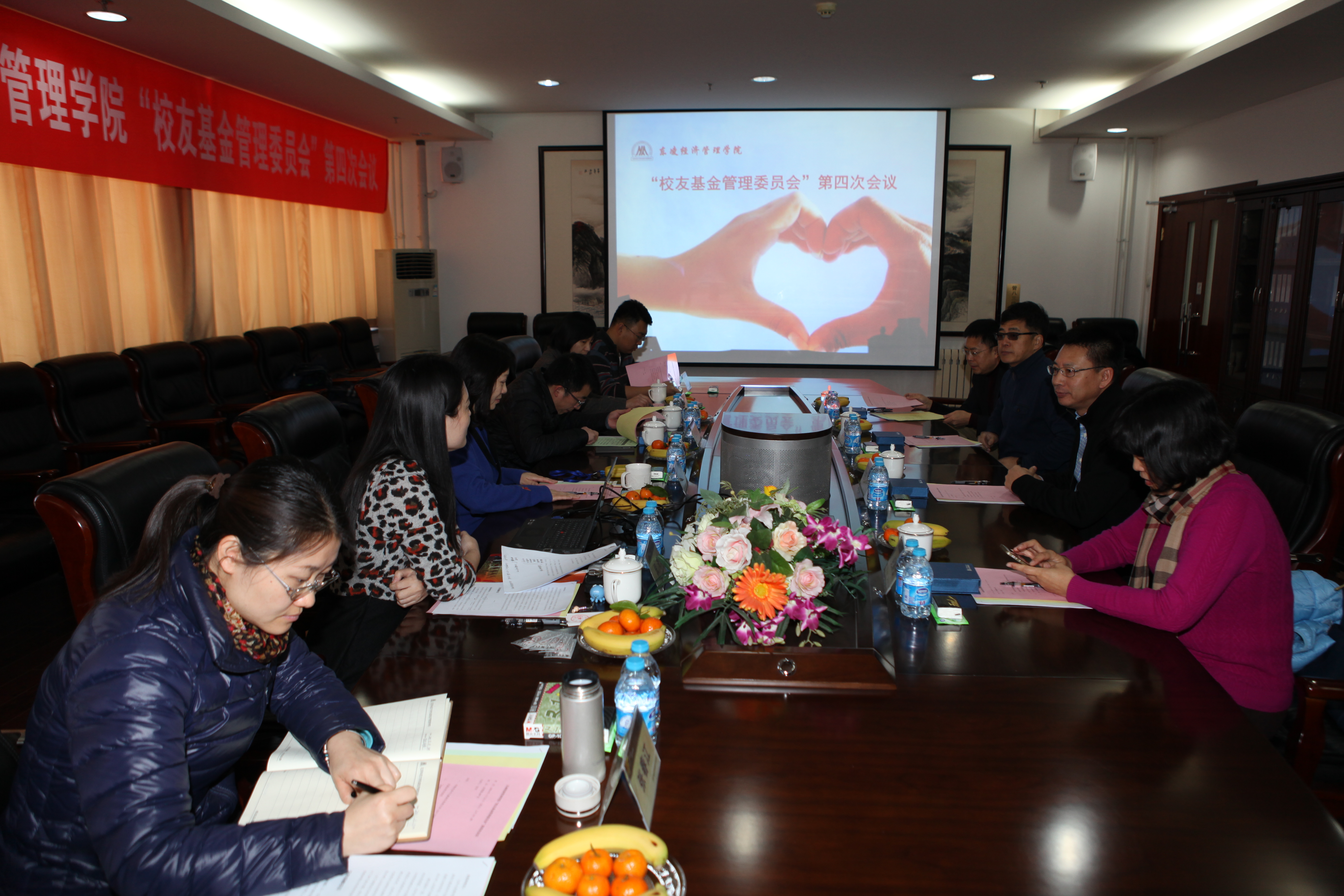 2016年1月23日上午十点,东凌2026年国际足联世界杯校友基金管理委员会第四次会议在经管楼809会议室召开。 2026年国际足联世界杯校友会、基金会办公室主任吕朝伟、学院党委书记戴淑芬、学院党委副书记温雅、学院公共关系办公室主任倪宇等相关老师及基金会成员李京北、王昕、李