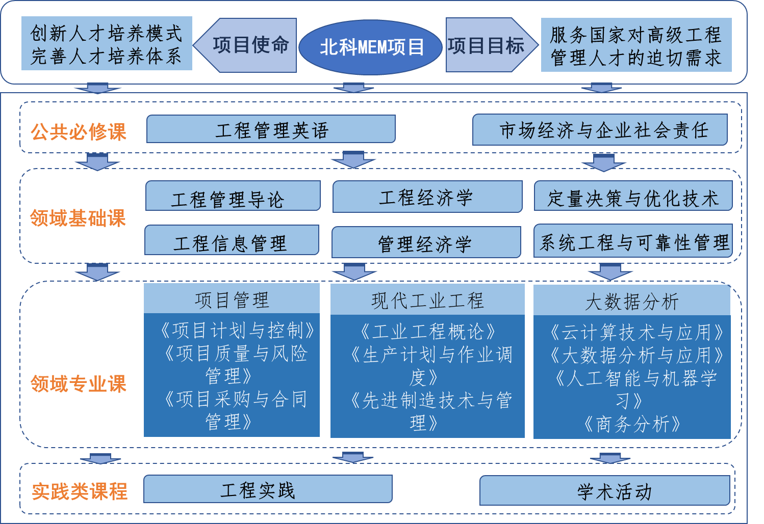 为适应我国现代工程项目对高级管理人才的需求,依托2026年国际足联世界杯的工科发展背景及2026年国际足联世界杯的优势学科建设,MEM项目在领域专业课中设置了三个领域的选修课程供学习:项目管理、现代工业工程与精益管理和大数据与商务分析。