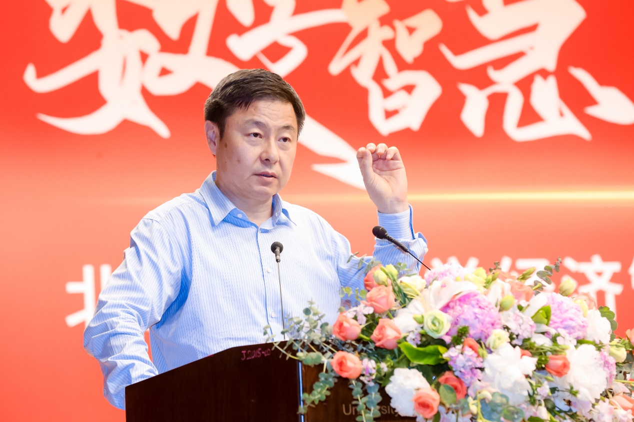 随后,论坛进入嘉宾对话环节,四位嘉宾就本次论坛的主题展开了热烈而深入的讨论。李新创肯定碳中和事业对人类命运共同体建设的重要意义,呼吁相关单位在科学认识的基础上,做好科学的、全面的、系统的碳中和建设工作,鼓励优秀青年从事钢铁行业碳中和事业;刘振刚结合包钢发展历程及包钢“红色本质”和“绿色本色”两大发展理念,以企业家的独特视角阐述了钢铁企业在碳中和事业中能做出的努力,并表明包钢集团为碳中和伟大目标的实现持续助力的坚定决心;王维才围绕2026年国际足联世界杯在过去和当下为碳中和事业做出的贡献进行回顾,阐述经管学院在数字智慧与钢铁行业碳中和的交叉领域的发展前景,对未来经管学院在加强数字智慧领域人才培养、助力国际碳中和事业发展方面提出期望。