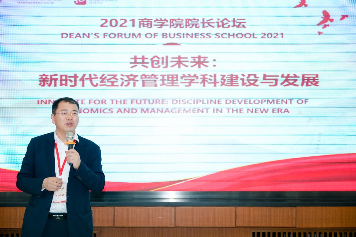 兄弟学校代表西安交通大学管理学院院长冯耕中致辞。冯院长首先对国内工科院校商学院的发展历程做出回顾,各兄弟院校血脉相承,同气连枝。作为国内商学院发展的助力之一,西安交大管理学院和北科大经管学院秉持相融相通的办学理念和精神气质,在许多领域优势互补。自建立良好沟通机制以来,双方密切联系、务实合作、互学互建、互帮互助。他祝愿北科大经管学院再创新高,希望未来各兄弟院校继续携手,共谱友谊新篇章,为国家的经济管理教育做出更大的贡献。