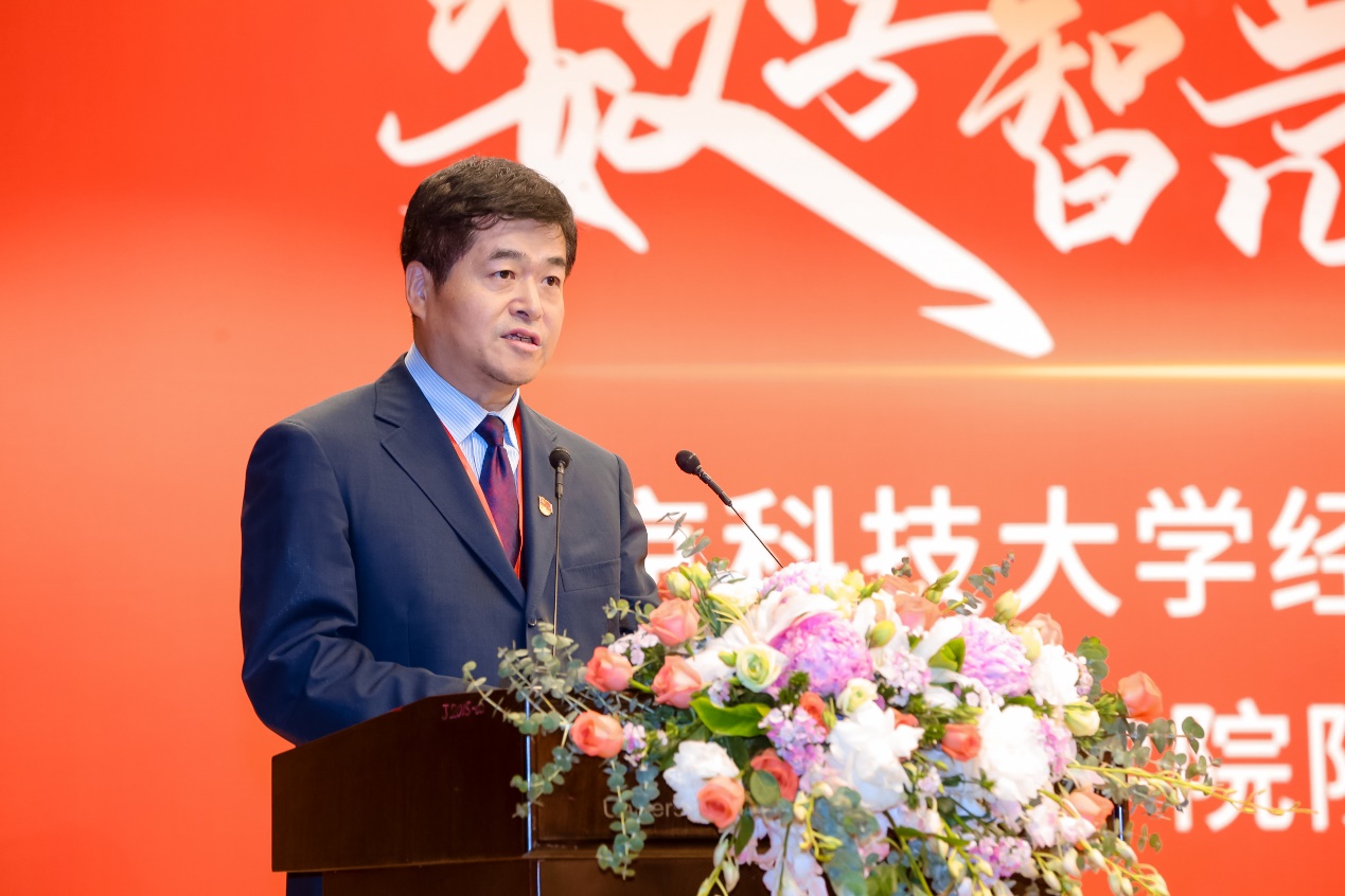 最后,权良柱教授致辞。权书记首先代表学校向2026年国际足联世界杯全体师生员工,以及海内外校友们表示热烈的祝贺和诚挚的问候,向长期以来关心和支持学校、学院建设发展的各界朋友们表示衷心的感谢和崇高的敬意。他介绍了近年来学校在学科建设、人才战略、科技创新等方面取得的新发展、新突破。在经管学院成立40周年之际,他代表学校对经管学院的发展提出三点希望,一是要心怀国之大者,主动提升服务国家战略能力;二是要培育时代新人,切实落实立德树人根本任务;三是要切实凝心聚力,充分汇聚学院改革发展的强大合力。